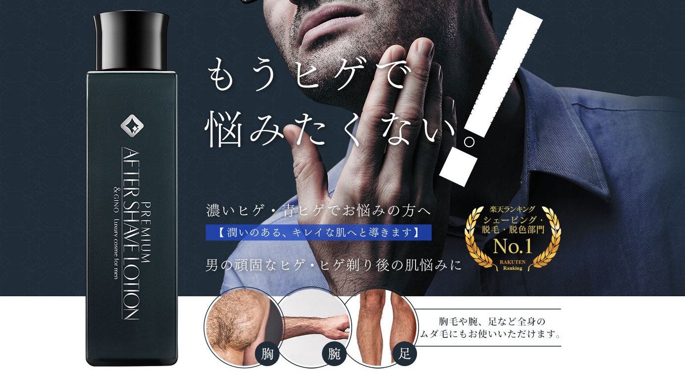 楽天の男性用化粧品ランキングで総合1位を獲得し、男性化粧品部門・シェービング部門でも高い評価を受けているアフターシェイブローション。