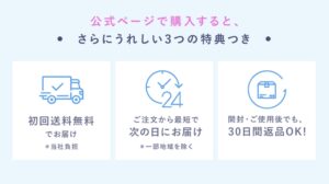 「肌に合うか不安」という方にも安心の返品保証付き。開封後でも30日以内なら返品が可能なので、はじめての方でもチャレンジしやすい環境が整っています。
